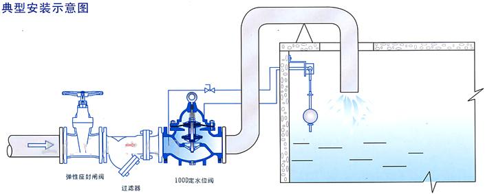 产品[定水位器]的详细资料:100D定水位阀,是一种隔膜式调节水箱和水塔液面高度的阀门。阀门由浮球控制,当液面达到设定高度时阀门通过相关结构将信号传递给水泵,水泵停止供水;当液面低于设定位置时水泵自动启动供水。该稠动作平稳,有效防止开泵水锤和停泵水锤的产生,避免管道产生过高的压力,适用于水箱、水塔的自动供水系统.该阀保养简单、灵活耐用、液位控制准确度高,水位不受水压干扰且关闭紧密不漏水,性能可靠. 100D定水位阀,定水位阀100D定水位阀,定水位阀