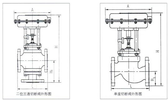 本系列产品有薄膜式、活塞式两种。阀体结构有单座、套筒、双座(二位三通)三种,密封形式有填料密封和波纹管密封两种,产品公称压力等级有PN10、16、40、64四种;公称口径范围DN20~200mm。适用流体温度-60℃~450℃。泄漏量等级为Ⅳ级或Ⅵ级。流量特性为快开。﹡切断阀采用多弹簧执行机构与调节机构用三根立柱相连,整个高度可减小约30%、重量可减轻约30%。
