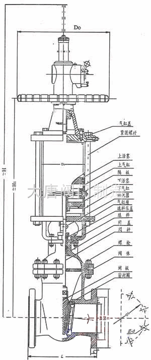 △耐腐防蚀的气缸 本阀的气缸选用于无缝钢管制造,内表面镀以耐腐性硬铬,并经抛光处理,具有磨擦力小、不易锈蚀、高硬度、寿命长等优点。