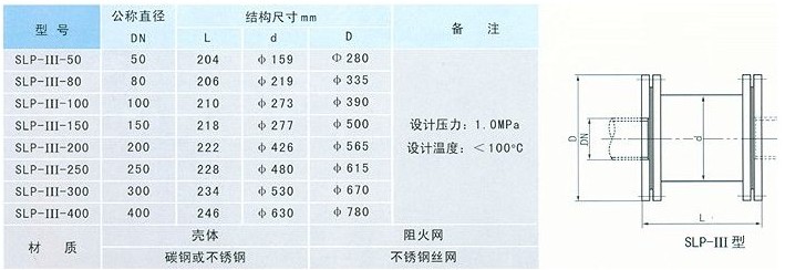 SLP-阻火器,采用法兰连接,结构短小精悍,阻火层采用不锈钢丝网,壳体为碳钢和不锈钢,可制造口径为DN50-400mm规格,也可按客户要求定做生产。